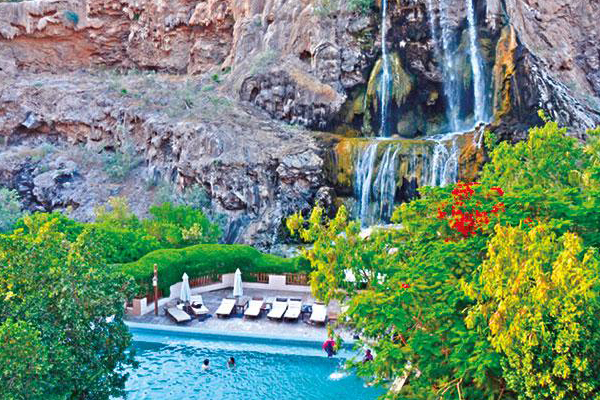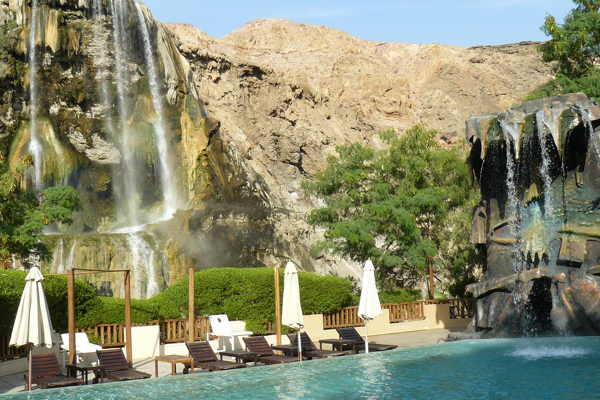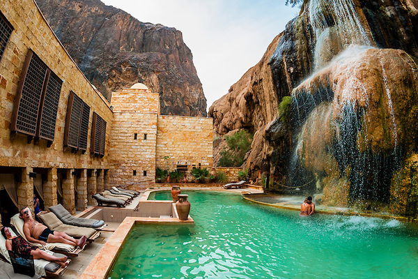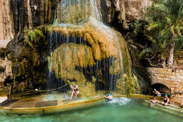 Ma'in Environment The hot springs are heated by hot water that comes from the top of the basaltic mountain and are dotted with waterfalls, painting a panoramic picture of nature and the depth of religious and historical heritage. The hot springs are accessible via several routes. The Ma'in waterfalls descend from the top of the mountains and form charming tides, complementing the waters that cross the Mujib Protected Area towards the Dead Sea through the Ma'in Mountains, extending into the springs. The Ma'in hot springs are an important station on the map of therapeutic tourism which thrives especially in the winter due to the warm climate of the region bordering the mountains between the mountains and its hot waters.