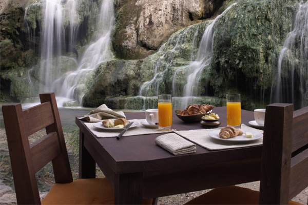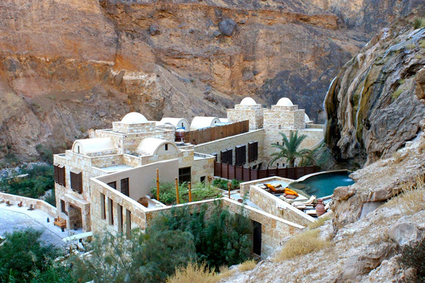 Visitors to the Dead Sea should also take advantage of another nearby wonder, Hammamat Ma’in (Ma’in Hot Springs). Popular with both locals and tourists alike, the springs are located 264m below sea level in one of the most breathtaking desert oases in the world. Thousands of visiting bathers come each year to enjoy the mineral-rich waters of these hyper-thermal waterfalls. These falls originate from winter rainfalls in the highland plains of Jordan and eventually feed the 109 hot and cold springs in the valley. This water is heated to temperatures of up to 63° Celsius by underground lava fissures as it makes its way through the valley before emptying into the Zarqa River.