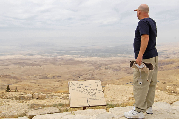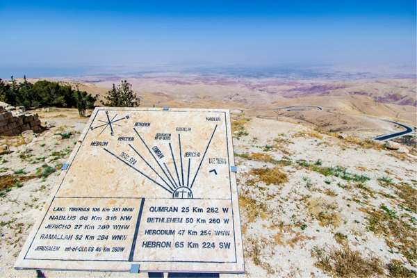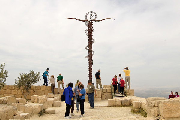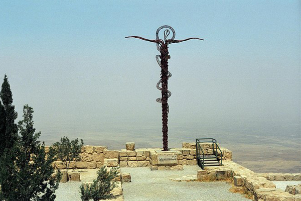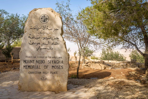 From Mount Nebo’s windswept promontory, overlooking the Dead Sea, the Jordan River Valley, Jericho and the distant hills of Jerusalem, Moses viewed the Holy Land of Canaan that he would never enter. He died and was buried in Moab, "in the valley opposite Beth-Peor" (Deuteronomy 34:6). His tomb remains unknown. After consulting the Oracle, Jeremiah reportedly hid the Ark of the Covenant, the Tent and the Altar of Incense at Mount Nebo.